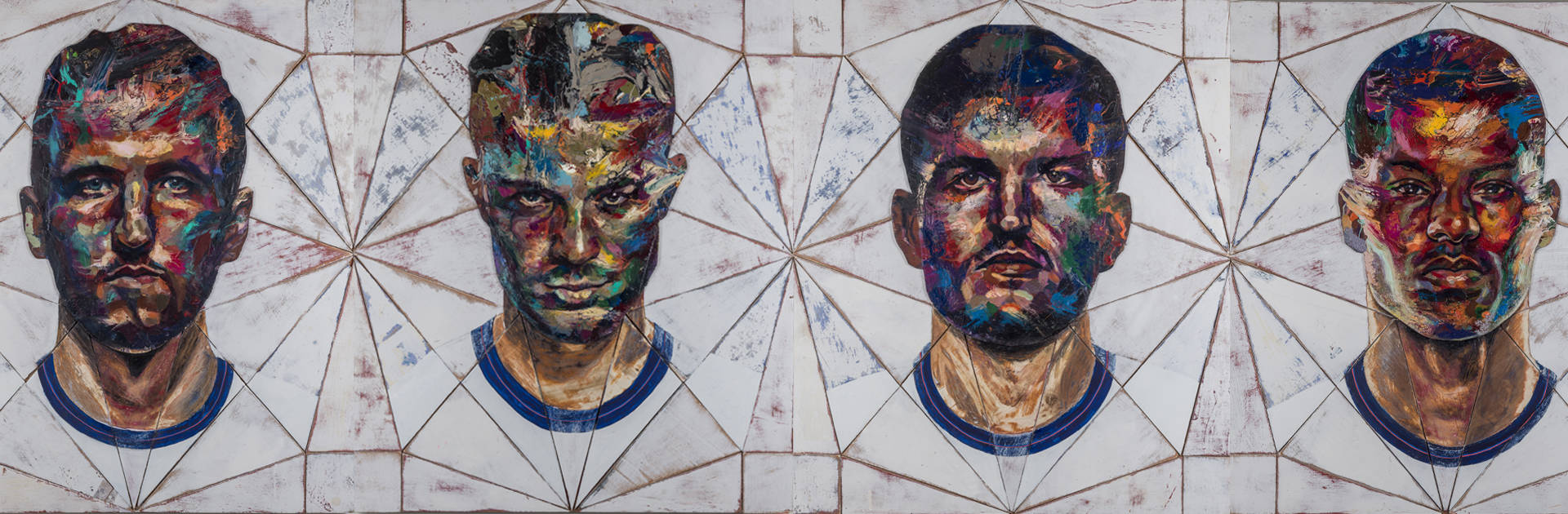 The set of paintings depict a group of players from a diverse set of backgrounds who not only made history with their sporting achievement but who collectively inspired the country through their example of teamwork and stance on equality, inclusivity and racial injustice.